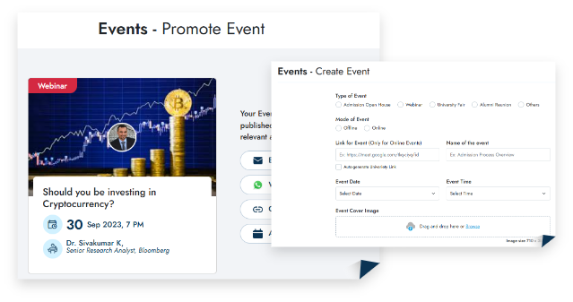 Foster meaningful connections through webinars, career workshops, and unique fun and learning events like "Alumpics." These gatherings allow knowledge sharing and strengthen ties among alumni and students. Our platform allows you to create and promote events to the target audience. Our Event Managers can also facilitate the planning and execution to ensure maximum attendance and in-event participation.
