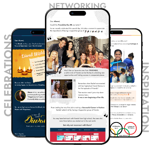 Execute targeted email campaigns to strengthen alumni relationships. These campaigns utilize data-driven insights to personalize messages, making alumni feel valued and involved. Univariety's campaign experts plan the emails around themes like "Recognition", "Recreation", "Networking" & "Emotional Connect" "Humor" and many others to identify the right appeal and interest areas for each alumni.