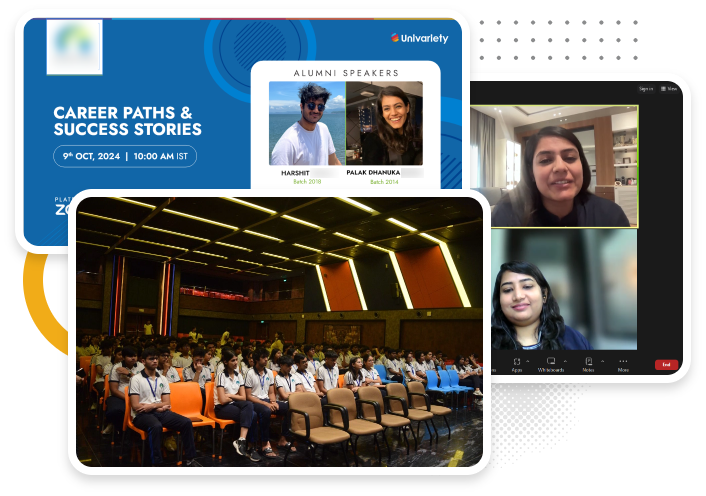 From hosting webinars, to on-campus career workshops and guest lectures for students, alumni journeys inspire and guide. The platform enables creation and online promotion of alumni events. On top of that, when Univariety's event managers join hands with institutes, then the events' impact is manifold.