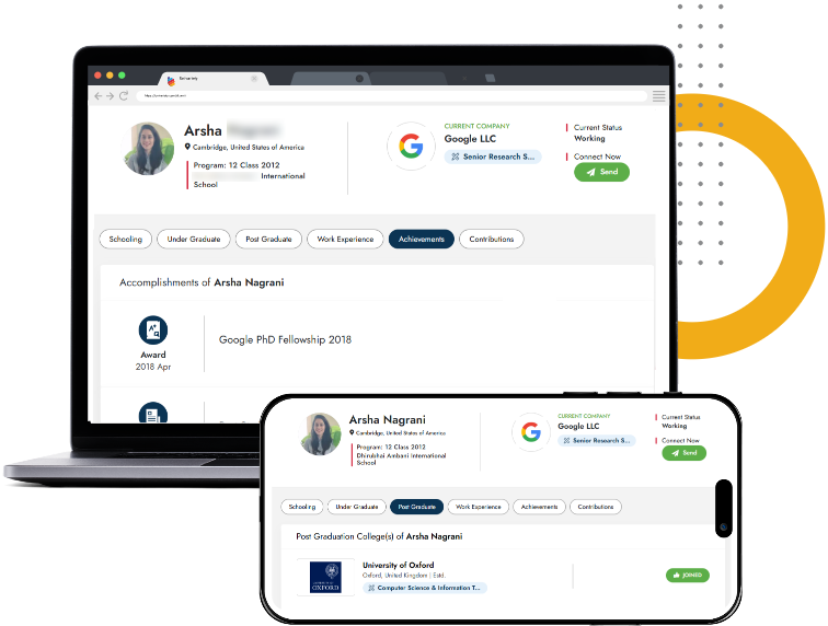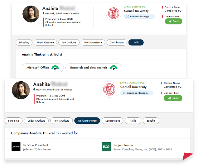While profile information and videos do give a glimpse of the alumni's journey and general guidance, it's even better to get in a one-to-one personal conversation with them and ask specific queries to get guidance.