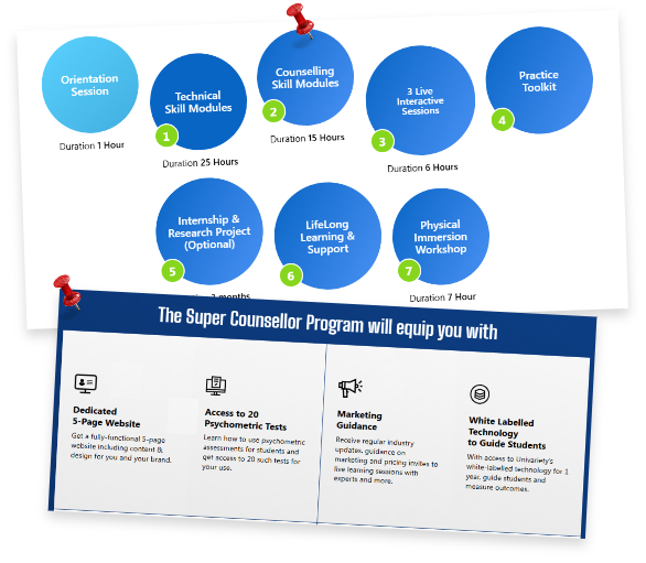 In association with UCLA we have been running the most comprehensive career counsellor training - The "Global Career Counsellor" certification. The program is a perfect blend of theory, application and practical exposure that enables an individual to transition into a qualified career counsellor with life-long learning benefits in form of refresher trainings, workshops, webinars, panel discussions and technology support to setup their own counselling practice.
