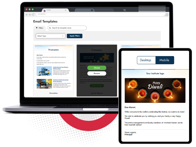 With our pre-built poster templates you can pick the alumni success stories from the platform and convert them into images compatible for printed posters or soft copy version for display on LED screens in your campus.