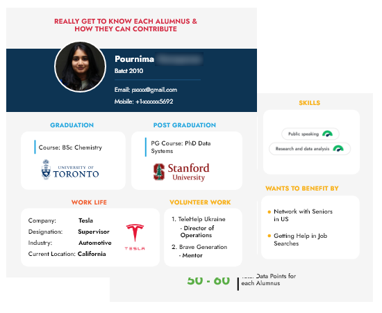 - Continuous Data Enrichment: We ensure your alumni data is always fresh and relevant, allowing you to maintain strong connections with your alumni network.