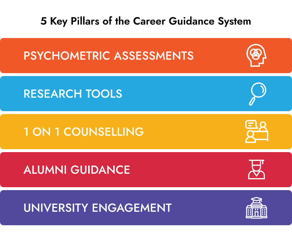 Univariety’s Career Guidance System is supported with 5 strong pillars, that bring 5 different perspectives in the decision making process.
