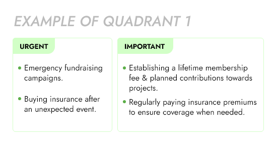 - Important but Not Urgent: Building and maintaining long-term relationships with alumni through regular updates and engagement activities.