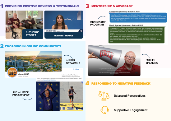 Now, save the best for the last- instead of hiring a digital marketing agency that will never understand the core value of your institution, reach out to your alumni & make them your ORM ambassadors-